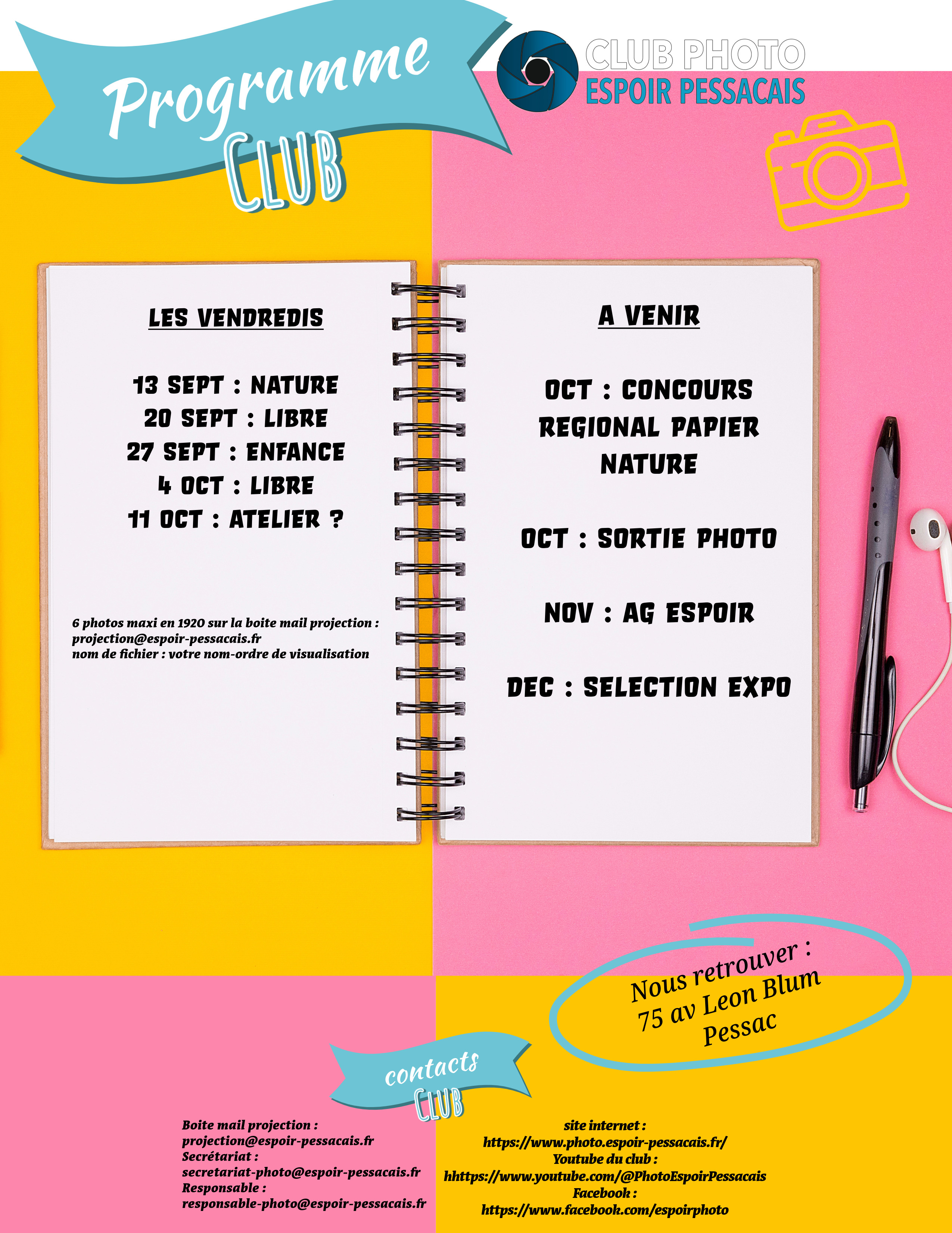Pour les personnes désirant découvrir le club, c'est le moment de passer nous voir, nous ferons un acceuil spécifique de présentation de la section. La même chose pour le vendredi 06 septembre.