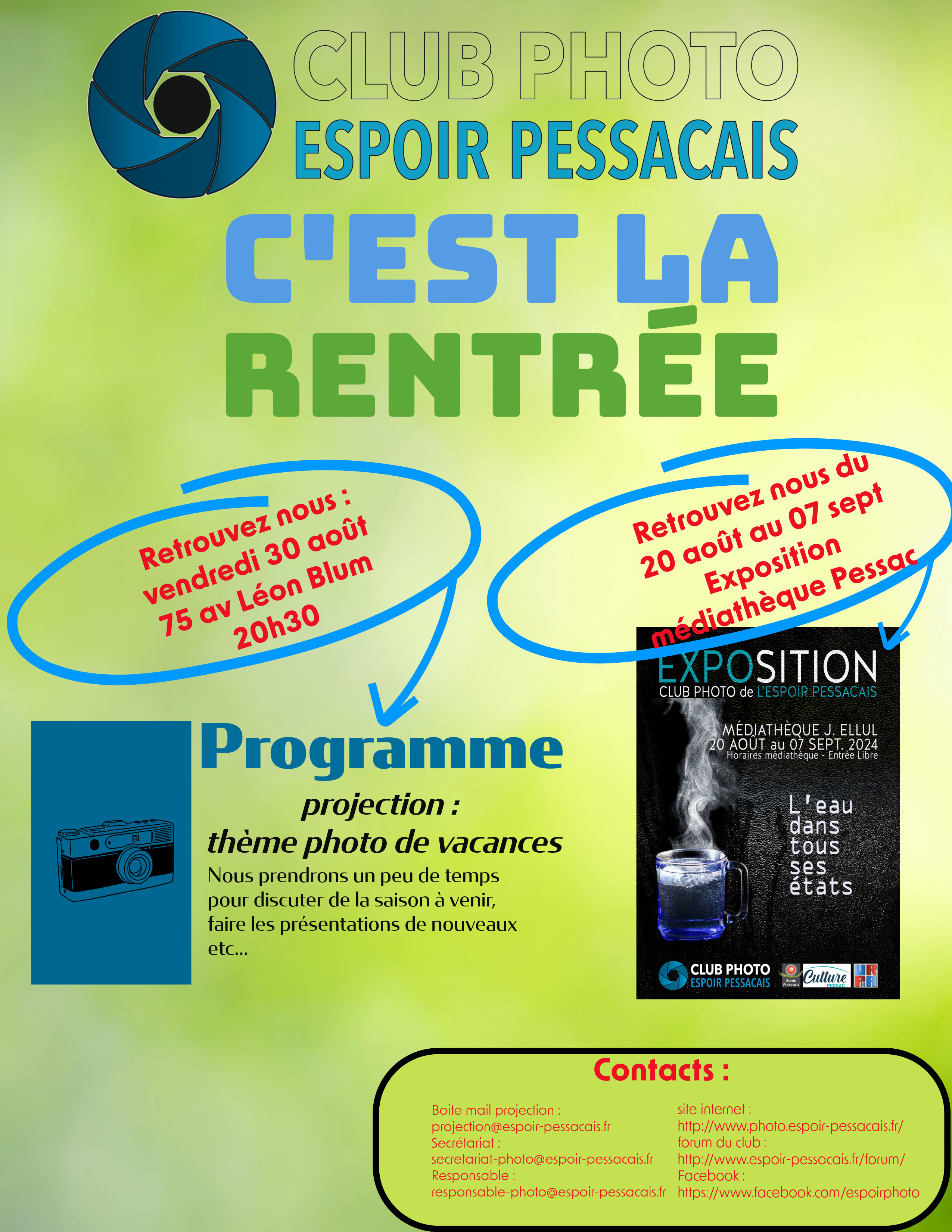 Nous avons aussi notre expostion qui sera visible du 20 aout au 07 septembre à la médiathèque J.Ellul de Pessac, nous serons présent sur place, bientôt un planning en ligne vous indiquera quand vous pourrez nous rencontrer.
